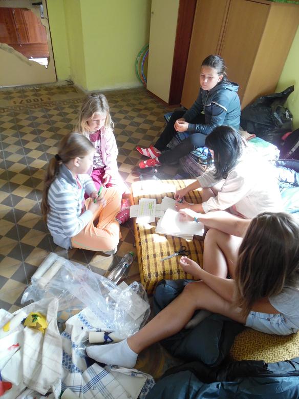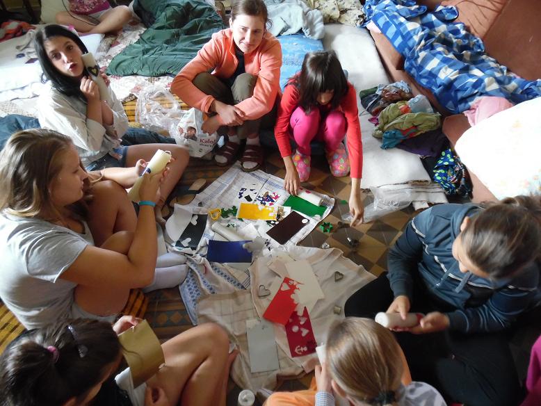 Dopoledne příštího dne jsme opět věnovaly vyrábění, tentokrát kytiček z organzy. Potom nastal čas na práci. Uklízely jsme kostel a sakristii. V 16 h jsme vyrazili do Hudcova na mši svatou. Kříž stavěli soluňáci a šlo jim to výborně. Po mši svaté nás otec František, jako každý rok, pozval na limonádu, za kterou děkujeme.
