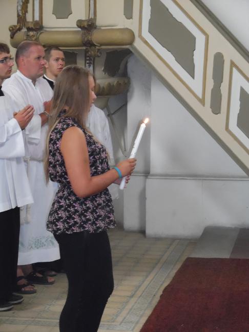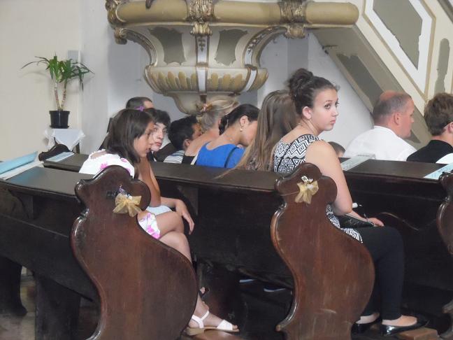 V sobotu se zdobil kostel na neděli, protože Míša poprvé přistoupila ke svatému přijímání. Velký podíl na přípravě má Jessica, která s pečlivostí chystala mašličky a připevňovala je na lavice. Odpoledne se šlo do Lahoště na mši svatou. Protože nebylo takové teplo, aby se šlo koupat na Barboru, některé holky se vykoupali v místním bazénku.